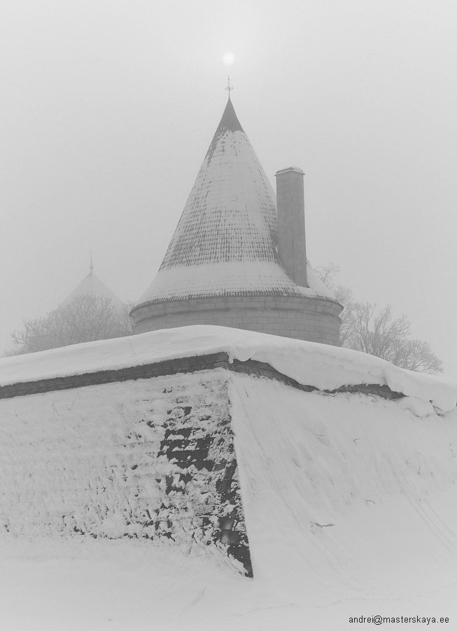 Никакой красоты. Никакого двойного смысла. Просто шёл мимо, показалось забавным: ещё чуть-чуть и шпиль сторожевой башни «насадит» на себя Солнце.